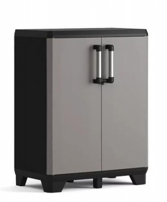 Szerszámtároló szekrény, alacsony, műanyag, KETER "Pro", fekete-szürke