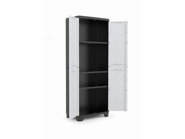 Szerszámtároló szekrény, magas, műanyag, KETER "Linear", fekete-szürke