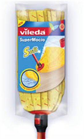 A Vileda Supermocio Soft gyorsfelmosó finoman bánik a padlóval, de hatékonyan távolítja el a koszt és más szennyeződéseket. A sárga színű mikroszálas csíkok kiváló nedvszívó képességgel rendelkeznek, és ragyogó tisztaságot varázsolnak otthonába.