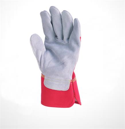 Rakodókesztyű, marhahasítékbőr, 11-es méret, szürke/piros